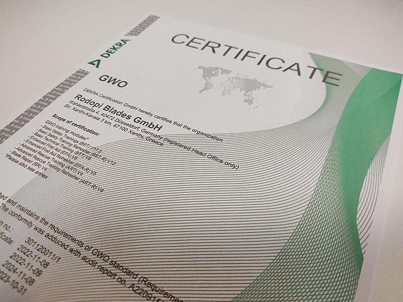 Düsseldorf/Xanthi, 09.11.2023 Die RODOPI Blades GmbH ist stolz darauf, die erfolgreiche Re-Zertifizierung der RODOPI Academy...