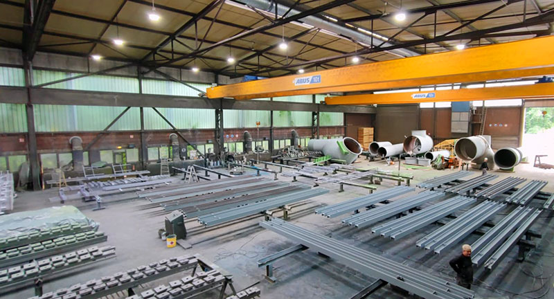 Das Unternehmen befindet sich strategisch günstig gelegen im Dreiländereck zwischen Köln und Aachen an der A4 und verfügt über eine Fläche von 8200m². Zu den vorhandenen Einrichtungen zählen ein 20 x 5,50 x 5,25 Meter großes Freistrahlputzhaus sowie eine Durchlaufstrahlanlage. Jährlich werden hier 180.000 – 190.000 m² Stahl gestrahlt und beschichtet.